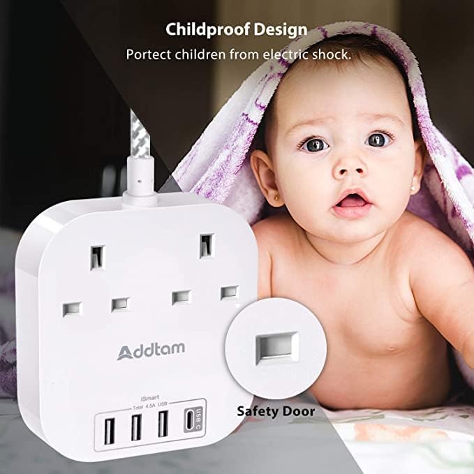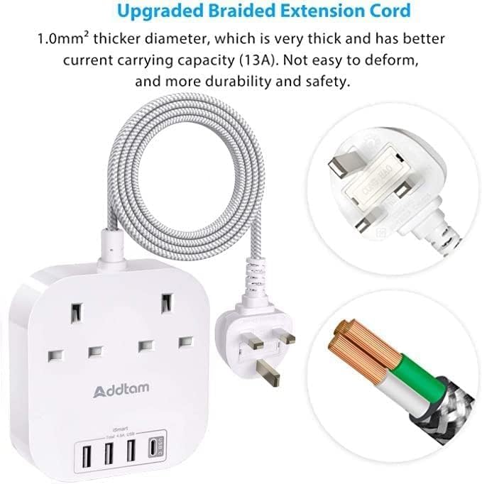 【Childproof Design & Upgraded Braided Extension Cord】- Child-protective safety door keep children safe from electric shock of careless touching. The 1.6M long extension cord is made of pure copper, which is very thick and has better current carrying capacity (13A). The braided power cord is not easy to deform, durable and more safety.