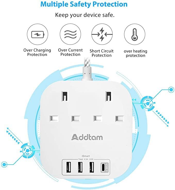 【Space Saving & Support Guarantee】 -The power strip is lightweight and small size, easy to carry and best for travel. With four anti-slip mat, it can be stable on the any table, saves desktop space for you and make your desk clean.( Addtam provides 90-day refund guarantee, 6-month warranty, 24h customer service.)