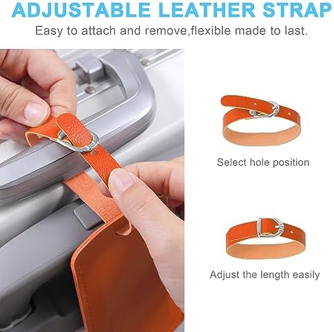 LUGGAGE TAGS MATERIAL: High Quality Premium Soft Leather Luggage Tags, No Odor, Eco-Friendly. Delicate Stitching Makes the Label Durable. The Buckle is Made of Durable Metal. Easy to secure your travel suitcase tag to your luggage, Can Make it Easier to Attach the Tags to Big Travel Bag